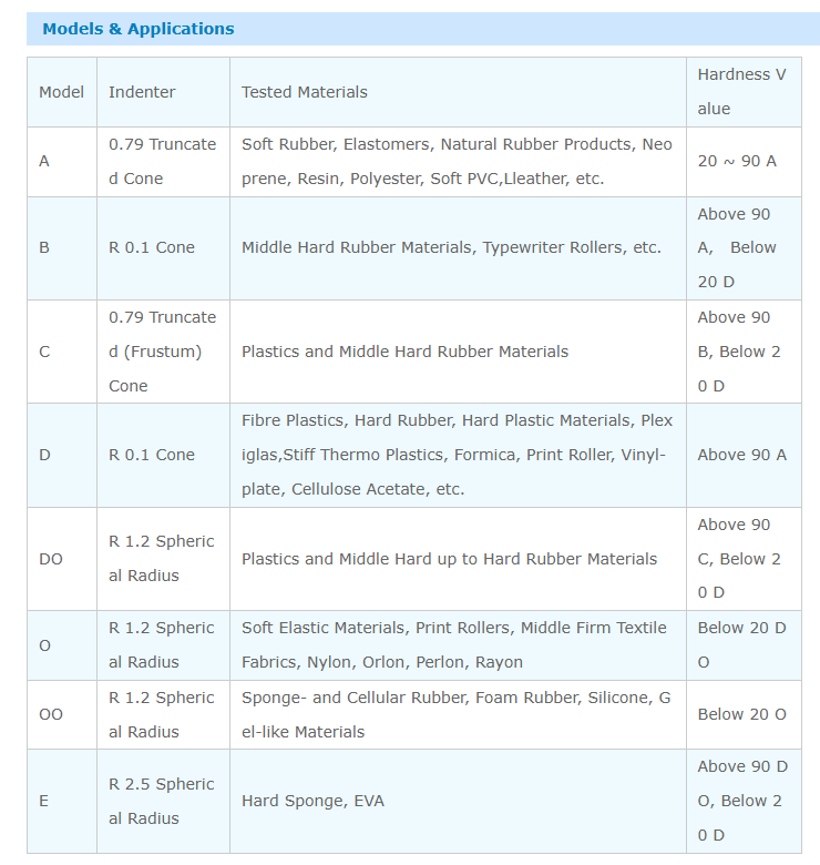 * It meets standards of DIN 53505, ISO 868, ISO 7619, ASTMD 2240, JISK7215.